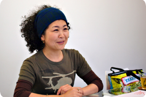 shinoさん。 この日は、ハラマキをヘアバンドにしてご登場。 子供サイズのハラマキが、 ヘアバンドにおすすめだそうです!