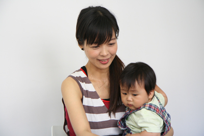 ほぼにちわ。 先週金曜日から始まった 「ほぼ日のんびりハラマキ」の再販売、 ご注文はお済みでしょうか? 初回の販売で注文してくださって、 既にお手元に届いた方々からも、 たくさんのメールをいただいています。 その中でも、目立つのが、 妊婦さんや妊娠経験のある方たちからのメールです。 「本当に助かりました!」とみなさんおっしゃいます。 本日は、妊娠中にハラマキを巻いていて、 出産後も、すっかりハラマキ愛用者になったという、 お母さん・東海林直子さんと、 9か月になる泰地くんに、お話を伺いました。