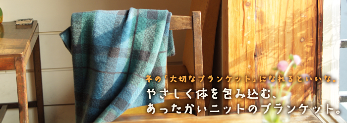 今回、そんなとっても大好評だった、 夏のブランケットにつづき、 冬の季節に合った、見た目も実際もあったかい、 ブランケットをお届けします。 素材は、冬にふさわしくウール100%。 ウールの中でも高級なグループに入る、 「クロイウール」という高級防縮ウールを使用しています。 このニットのブランケットは、 織物のブランケットとは、またひと味ちがう、 ニット地ならではの特長も兼ね備えた 冬のブランケットです。
