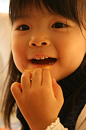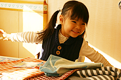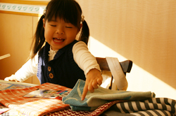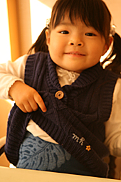 「見て見て〜」とハラマキを見せてくれるさくらちゃん。