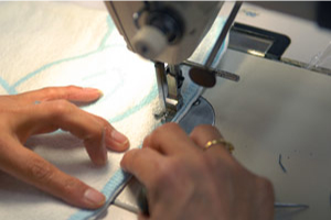 生地の脇を縫い合わせているところ。