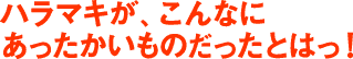 医学博士の古藤高良先生に、 ハラマキをつけることによって、 体にどんな効用があるか、 医学的な観点でお話しを聞いてみましたっ!! 女性のみなさん、お腹がすぐ冷えて困っちゃう、 なーんてことはありませんか? 男性のみなさん、腰痛で困っていたり、 年をとるにつれて、 おなかのまわりの脂肪が気になったりしていませんか? じ・つ・は、“ハラマキ”をつけることによって、 そんな悩みが解消されるんです!! くわしいことはこちらのページに載ってますよ!