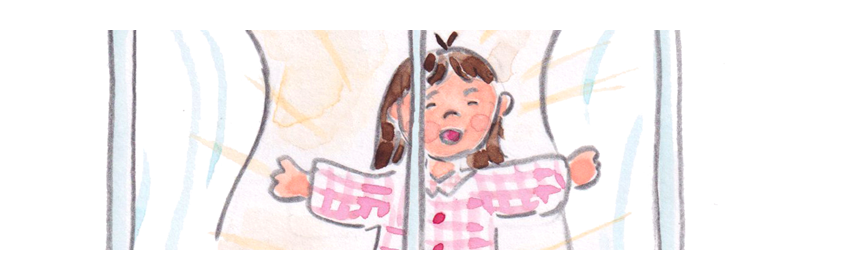今日も窓を開けて、白いカーテンのリボンをぎゅっと絞る。