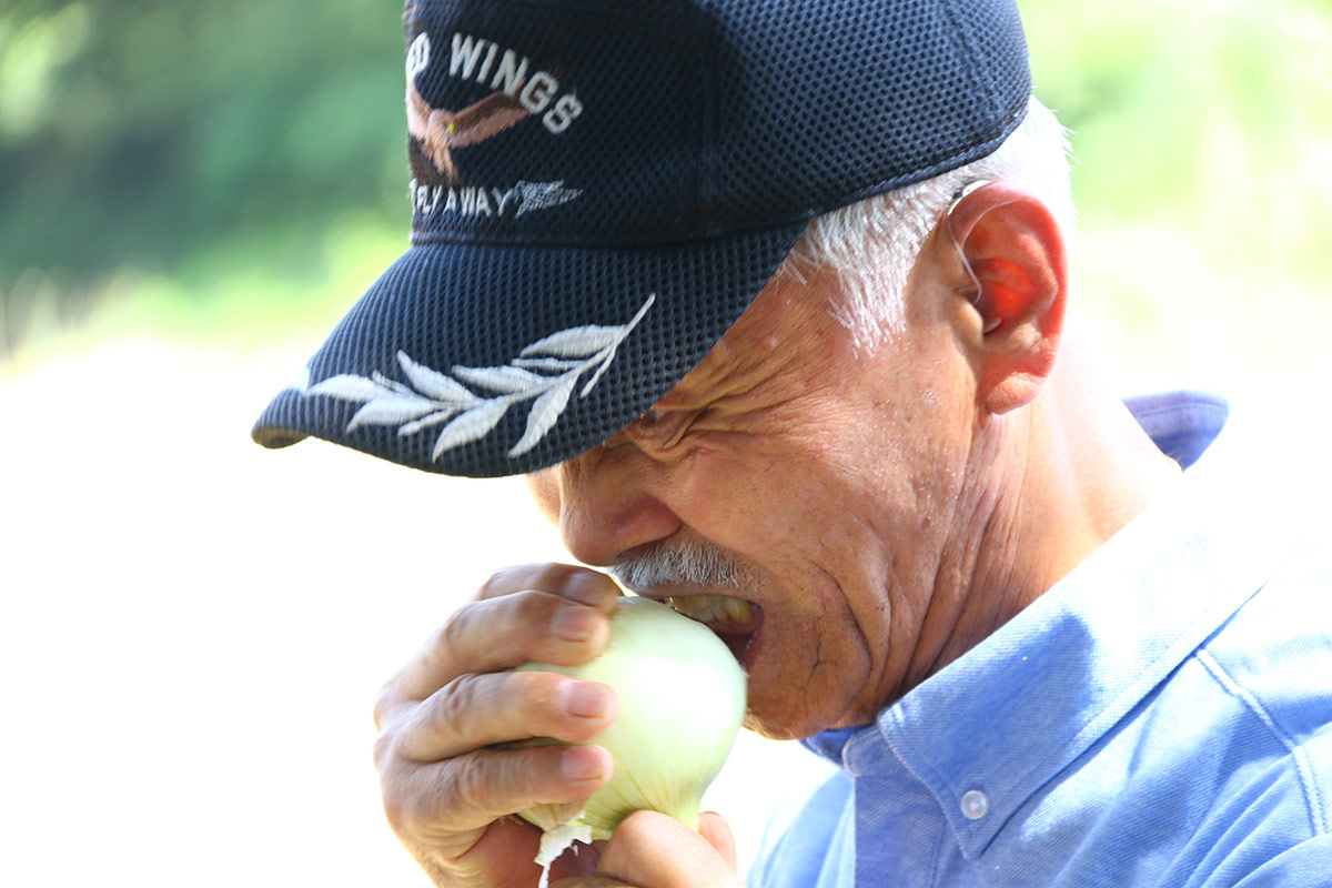 ▲とはいえ、生の玉ねぎは、さすがにちょっと辛みが‥‥。