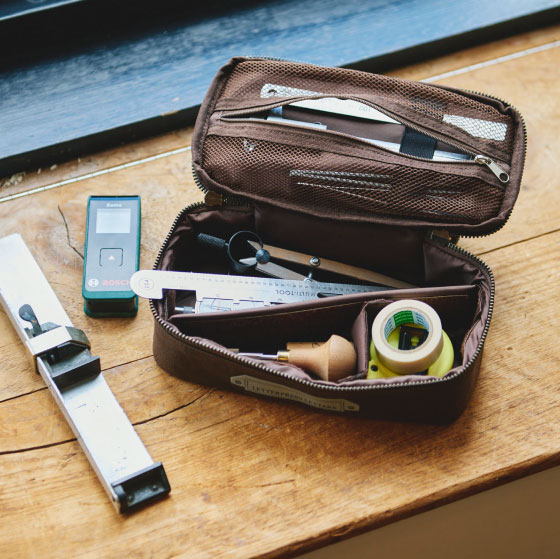“Drawer Pouch of a 〇〇” is a series of pouches we created by teaming up with people in various industries to observe their own actual drawers and then create a Drawer Pouch from scratch by deciding the size, shape, and materials.