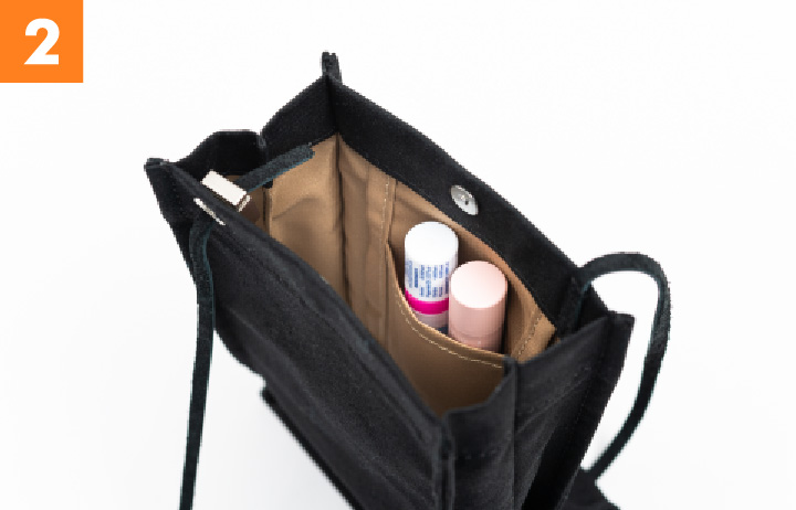 スマホ、財布、ハンカチやハンドクリームなど、持ち物がコンパクトにまとまります。