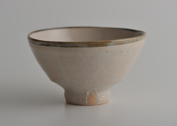 ふちが黒っぽく、内側が白っぽいいうつわを、黒い皮の下に厚く白い脂肪があらわれる鯨の身になぞらえて、茶人たちは「皮くじら」とよびました。男性的になりがちな皮くじらですが、これはやさしい色合いで、女性にも似合いそうです。ごはん茶碗としては、やや大きめですが、シンプルなかたちは、使い方を選びません。