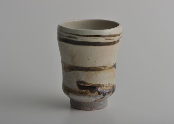 くすんだベージュの長石釉に、フリーハンドの竹筆で描かれた鉄釉の線は、ダイナミック。あくまで自由。大ぶりな姿は、無骨なようで、やさしげでもあります。この圧倒的な存在感と、ながく、ながくつき合ったら、どんな関係になれるでしょうか。