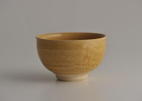 灰釉、薄紅とおなじかたちの小どんぶり。黄伊賀という釉薬で、キャラメルのような、おいしそうな色になりました。つやつやのごはんを引き立ててくれるあたたかい色。底がまるいので、ごはんも、おかずも、たっぷりはいります。