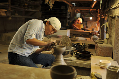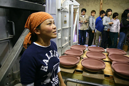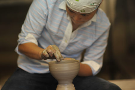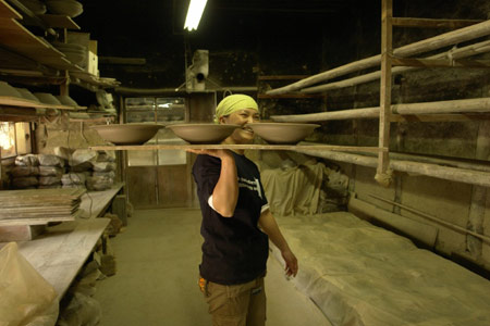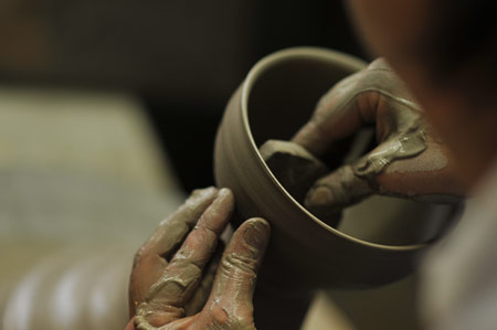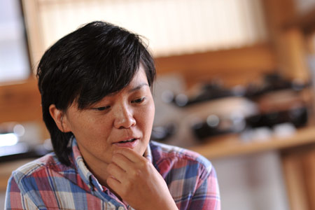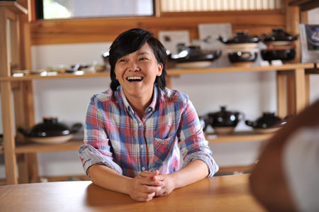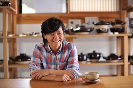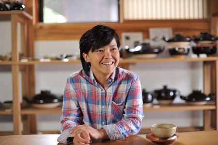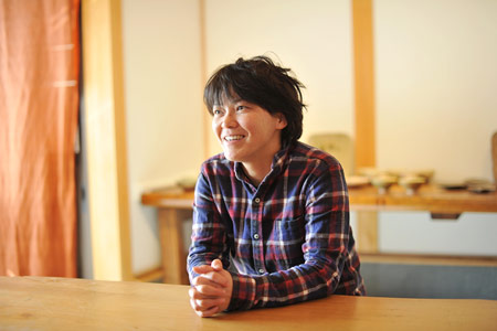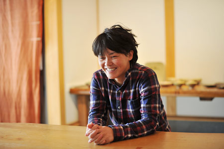 ![]() ![]() 2011年は、ああいうことがあって、 自分の中の自分の存在価値みたいなものを 改めて思う、ということがありました。 人の死がああいう形で突然にあるっていうことを 改めて認識をしましたんで、 その死に対して、自分もそうだけども、 “そのあとのこと”をやっぱり考えました。 そして、土楽の跡取りとしての仕事、 職人と父のあいだに入ることだとか、 将来みたいなことも考えることが増えたなかで、 自分がろくろに向かう時間は 一所懸命作らないといけなかった。 本当に割り込んでいく感じで入れないとならなかった。 それも、最初の頃は本当に手つかずというか、 できなかった、ですね。 「割れるものを作る」ということに対しても、 どうなんだっていう思いもありましたし。 ![]() この1年、増えた仕事もあって、 それは料理の仕事ですね。 何でも簡単じゃないですか、うちの料理は。 そういうとこから土鍋をもうちょっと 気軽に楽しく使ってもらえたらなあと思って。 それから、父の展覧会が多かったんです。 震災のことでは、父もものすごく ショックを受けたと思うんです。 多分、私たちにそんな言うことではなかったんですけど、 あの人の中でものすごい出来事だったっていうのは あると思うんですね。 けど、そこで吹っ切って、 ものすごく前に進まはったんじゃないかなと、 そんなふうに見えました。 ![]() 父の展覧会に手伝いでついていいくと、 父の器をあらためて見るんですね。 そうすると、あらためて、 ろくろをもっと引かなアカンと思います。 父にもっと近づきたいという思いはある。 ですから今年の目標は、陶器をもっと見ることと、 もっとろくろに向かおうということです。 2012年は、グループ展のお話をいただきました。 初めてです。自分の名前が載る展覧会は初めて。 昔からの父の友人の息子さんであったりとか、 芸術をしている人たちといっしょにやります。 1人は水墨画、1人は彫刻家です。 それが9月です。 ほかにもいろいろ考えています! きっと──、あっという間ですよね。 やらなきゃいけないことはたくさんある! そんな1年だと思います。 ![]() ![]() 今回の、あたらしい器は、 前回の飯わんに絵付けをしました。 土楽の器はほとんど装飾がない、 シンプルな形で勝負というところがある。 それは父の持つ、ものすごい美意識の中にあって、 私もすごく好きなところではあるのですが、 性別の違いが出るのかなあ‥‥、 ちょっとかわいいデザインのものをつくりたくなった。 私らしい形と絵付けの器ができたと思います。 ![]() |