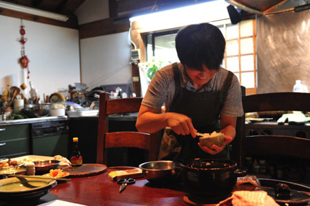 ![]() 伊賀の土楽、福森の家に生まれましたが、 やきものをやれ、と言われたことはありません。 ![]() ▲伊賀・土楽のギャラリーで。 四人姉妹です。 長女は、作り手になるということとは別に 継がなあかんという責任はあったと言ってました。 次女は結婚して家を出て、 三女の円(まどか)はうつわづくりの道に進みました。 わたしは食文化関係の短大に行き、 そのまま料理の道に進もうと思っていたんですが、 ひとまず伊賀にもどって、半年ほど、 当時健在だった祖母の、農業の手伝いをしていました。 ![]() ▲土楽の敷地内にある畑。 少し離れたところに田んぼもあります。 土楽ではお米は自前。 家族と職人さんみんなで、田んぼ仕事もしています。 当時は、毎日のように父と喧嘩してました。 私も二十歳そこそこで、エネルギーが有り余っていて、 私がうっかりつかみかかるものだから、 父(福森雅武さん)はよけようとして手を出す。 すると、力の差があるから私がふっとばされたりして、 いつも青あざつくっていたんです。 ![]() ▲土楽の裏山は道歩さんのお気に入りの場所です。 春は山菜、初夏は山椒、秋はきのこがとれます。 そのころ、父が本を出すことになり、 編集者のかたやアートディレクターのかたが 家にいらしていた。 そのディレクターのかたが青あざつくってる私を見て 「あんた、どうしたの」と。 「こうこうこうなんです」 「どうしたいの」 「料理の道に行きたいなと思ってます」 「じゃあ、ぼくが先生を紹介してあげよう」 ということになり、 料理研究家の村上祥子先生に 師事することになりました。 ![]() ▲『土楽食楽』(文化出版局) 福森雅武さんの四季折々の暮らしと料理を 2年かけて取材してつくった本です。 東京に住むというのは まったく考えていなかったことでしたが、 あんがいどこの水にもなじむ性分らしく、 3年ちょっと仕事をさせていただきました。 その当時の友人が飯島奈美さんです。 彼女は別の先生についていたんですが 同じアシスタント同士で気が合って。 ![]() ▲土楽の台所にて、飯島奈美さん(右)と。 ふたりのコンテンツ「土鍋でLIFE」をごらんください。 そのあと、もっと本格的に料理を勉強して、 資格を取ろうと、 大阪にある辻調理師専門学校に行きました。 ところが、突然、 生きたものがさばけなくなったんです。 卒業を前にした、10月くらいのことでした。 それまで全然平気だったのに。 海老の頭を取るとか、できなくなった。 ものすごい恐怖があって。 それで、困ったな、料理の道に行くのに こういうことではどうしたものかと。 こんな状態で料理をするなんて厚かましい。 誰かがしめてくれたものを調理する? そんなの、自分では許せなかった。 人にそういう始末をしてもらって 自分が料理をするってことは絶対ダメだって。 ![]() さて、どうしたものかと思って、 いろんな人に相談をしていたんですね。 そうしたら、懇意にしている人が、 「お寺に行ってみたらどうか」。 たしかに殺生っていうことについて、 もうちょっとちゃんと考えないといけないかな、 お寺っていうのも ちょうど自分に合ってるかなと思いました。 それに、食べることさえも、 だんだん怖くなってきたりもしていたんです。 でも、自分の命をおろそかにしたらね、 それまで食べてきたものにも失礼だし、 親にも失礼だし、いろんなことを考えて、 これじゃああかんなと思って、 お寺に行こうかなと。 そして月浦(げっぽ)和尚様を師として、 大徳寺の龍光院に入ったんです。 お寺では、体力仕事ばかりです。 基本はお掃除。 ほかに中学浪人の男の子がひとり、 アメリカ人のお坊さんになりたいっていう 小僧さんがひとり。 みんなで掃除をし、 いただいたものを料理し、 作務(さむ)っていって畑仕事をしたり、 石畳の石を据えるとかも、しました。 なにか教わるということはないんです。 体ばっかり使うんです。 考えたらダメっていうことで、考えないです。 やることはいくらでもあるので。 ![]() そうやってお寺に住んでいたころ、 あれは12月だったか、 姉の円から相談を受けました。 自分のつくりたいものについて悩んでいること、 そして、結婚をしたい相手がいること。 そしてその相手は同じ作り手で、 お父さんとは絶対に合わない人だし、 だから家を出たいんだっていうことを言われました。 そのとき思ったのは、 「ほんなら、まあこういうふうになるもんなんかな」 っていうことです。 お寺にいたんで、そのときもうほとんどのことは 諦めた、いうんかな。 悟りではないんですけど、 そういうものだっていうことが だんだん見えてきていたんでしょうね。 で、まあ、そういうふうになってるんだって思って、 「わかった」って。 「あなたは何も心配せんでいいから、私もどるから。 好きなようにしたらいいよ」って。 それで翌年の春、家にもどったんです。 料理を諦めたというわけでもなかったんです。 料理っていうのは、3食、食べる