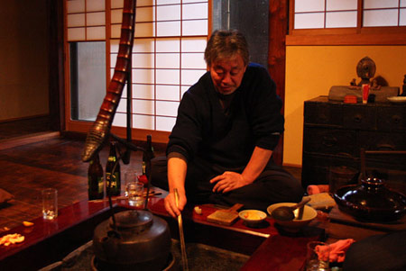 ![]() この1年、すごく精力的だった? そう見えますか。 何、「ほぷらす」で今回、 ぼくのがいちばん早かったの? わっはっは。そうですか。 作りたいものから作った、それだけですよ。 いやあ、何もないですよ。 偶然、重なったんですね、いろいろ。 たしかに東北にも何遍も行ったし、 あちこちで個展も多かったかもしれんけど、 こういうことはね、決めても、 どうなるかわからないとこがありますでしょう。 ま、料理と一緒やね。 ![]() 震災の影響ですか──。 行ってね、実際を見たら、 やっぱり気持ちが変わりました。 海の、想像もできないエネルギーというのは、 人間の気持ちまでも圧倒してしまうというかね。 やっぱりもう、何ていうか、身が止まるというか、 時間が止まるというかねえ、 気持ちも全部止まってしまうというような 感覚になったんですよ。 鳥肌が立ってね。 ‥‥考えることを超えたものを、 自分の身に感じられるということがありましたね。 だからどうだということでもないんだけど、 行くと、本当に喜んでくれる人たちも いっぱいいるわけね。 何をしたらいいのか悪いのかもわからなかったからね、 実際、喜んでくれたというのがよかった。 ![]() そう、昨年、器では、磁器をやりましたね。 たしかに何十年ぶりやね。 これは、土との出会いだったんです。 前から、向付の型だけは作ってたんですわ。 それで、ちょうどそれに合うような磁器土が見つかった。 明時代によく似たものができてるんですよ。 古染付というんですけど、 それの雰囲気で何かを作りたいと思ってたから。 そういうチャレンジだったんですね。 ![]() 道歩や円は──、私はまだ、 そういうふうに(同じ作り手として) 見るということはなくてね。 まだあの子らの物が、完成してませんので。 迷ってますか? わっはっは、そうですか。 ずーっと自分で自分を迷いながら、 しばらく行くんじゃないかなと思います。 迷ってていいんですよ。 だんだん年代経って、何かの壁があったりすると、 越えなければならないんです。 それはつらくて、どうしようもないものだけれど、 越えなければ、次ができませんからね。 物というのは何か一つあったら、 それを乗り越えてまた自由になって、 またこう迫ってきて、また自由になるという、 それをどんどん繰り返していかなかったら、 そこで止まってしまうんですよ。 例えば文章を書いててもね、 前から同じ調子のものでずーっと書いてると、 何かもう一つ違う意味の雰囲気を出したいと思ったら、 そこから抜け出さなきゃならないでしょう。 それを繰り返さなきゃならない。 自分が感動しなかったらお客も感動しませんからね。 同じですよ。何でも同じ。 ![]() 何というかね‥‥自分の考えというのは、 積み重ねていく人が多いんだけど、 あるとこからそれも脱却して、 いつも真っ白に戻るほうがいい。 いつも真っ白に。 そこから出発して、また真っ白になる。 積み重ねたらね、必ず途中で不安定になるんです。 例えば字を書くのでも、 上手な人の字を下に置いて書くと、 ある程度上手にはなるんだけど、 もうどうにもなりません。 自分の自由な形ちゅうのができなくなっちゃう。 概念から入るというのはそういうことです。 |