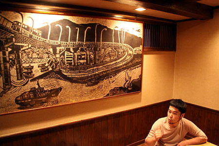 ![]() もともと絵を描くのが好きでした。 小学校のときの先生がすごくいい先生で、 その先生がいたおかげで絵のおもしろさを知って、 夢中になって描いて、 絵や版画で賞をいっぱいもらいました。 それでちょっと美術の才能があるんじゃないかって 勘違いしていたんですけど、 やっぱり社会に出るとね、 すごい人たちがいっぱいいるから 俺って普通だったんだなと思うんです。 陶芸を志して隆太窯に入ったとき、 ほんとうにそう思いました。 ![]() ▲余宮さんの実家である焼鳥屋に飾られている、 余宮さん、小学生5年生のときの版画。 隆太窯に入ったきっかけですか。 そもそも──高校は工業高校です。 というのもその先、建築をやりたかったから。 絵が好きでも、 美術の大学に行こうなんて思わなかったです。 天草にいると、そういう発想ないんです。ほんとに。 それで高校を出て、 福岡の、建築の専門学校に行きました。 それがバリッバリ厳しい学校で、 自分は絵を描いたりとか、 図面を引くのが好きだったんですけど、 そこで習うことは、 高校なんかで勉強してたレベルじゃなかった。 とくに計算ができなくて。とても苦労して。 最初、40人ぐらい入って、 卒業したのが10人ぐらいだったんじゃないかな、 それでもあともうちょっと行けば卒業、 というときに、やきものと出会いました。 ![]() 当時、福岡に玉屋っていうデパートがあって、 そこに、田中丸コレクションっていう 唐津焼のすごいコレクションがあったんです。 俺、中洲でバイトしてて、 玉屋によく建築や美術品を見に行ってたんですけど、 その田中丸コレクションも、 だれでもただで見れるように置いてあるわけです。 それを見たとき──、 未知なる世界を見るようで、ドキドキしてしまって。 ちょうど、学校でも迷ってたときのことです。 そもそも、ちっちゃいときからずっと 陶器で育ってるというか、 うちの母が陶器が好きで、ずっと集めていたんですね。 まあ、九州だから唐津とか小石原、 小鹿田(おんた)とか、そのへんです。 そういうこともあるんでしょうけど、 とにかくドキドキしてしまって、 母に相談したんですよ。 やきものの仕事でもしてみようかなあ、って。 ![]() ▲余宮さんの窯の名は「朝虹窯」。 天草にカフェが併設されたギャラリーがあります。 昔の農協の建物を改装したお店です。 そしたら、たまたま、 中里隆先生と同級生の方が、建築家で、 天草に仕事でいらしてて、 うちの実家の焼き鳥屋に飲みにいらしてたんです。 俺が電話したとき、たまたま。 で、ちょっと待ってっていうことになって、 聞いてみようかっていうことになって聞いてもらったら、 もう、すぐ来いって言われて、面接に。 で、行ったら、 卒業まで待っとったら熱が冷めてしまうから、 すぐ来いって言われて、 母に相談した1週間後ぐらいには もう窯出しの手伝いをしてました。 でも、陶器のこと、その世界のこと、 なんにも知らなかったです。 だって、面接の前に、 隆先生が載ってる本があるからって、 母がうつわの本を送ってきたんですよ。 そこに詩人の高橋睦郎さんが 隆先生の器を紹介してた。 俺、その高橋睦郎さんが 隆先生だと思って、面接に行ったら、 全然違う人が出てきた。 「僕のこと、知ってる?」 っていきなり訊かれて、 嘘だったけど、はい、って言ったんですね。 そんなふうにして考える隙もなく、 何の知識もなく、飛び込んだのが、隆太窯でした。 俺、面接にスーツで行ったんですよ。 今までスーツで来たやつなんか初めてって言われた。 入ることになって、 それじゃ下着だけ持って来いって先生が言ったから、 俺、ほんとに下着だけ持って行ったら、 そうやって来たのも初めてだって言われました。 そして窯に入るからと、学校を退めました。 ![]() ▲山のなかの古い日本家屋を工房にしています。 隆太窯には、3年いました。 きびしい世界ですよ。 ご飯も食べれるし、寝るとこもあるし、 何不自由もないんですけれど、 休みも外出も、ない。 もちろん盆と正月はありますが、 基本、休みをとらず、 いっしょけんめい技術を習得するんです。 隆太窯は当時、 唐津でいちばん徒弟制度が厳しい窯だと 言われてました。 先生がいるときは、毎日、お客さんがいらっしゃるから、 お帰りになって、食器洗って、包丁研いで、 台所、全部雑巾掛けして、 夜の11時ぐらいから、ほんとは練習なんです。 ろくろの練習。 ‥‥僕は、なまけもので練習嫌いでしたから、 あまりやってませんでしたけど。 とにかく年に4回、登り窯を焚くので、 1ヶ月半、窯詰めの準備、 1ヶ月半、窯出したあとの窯の掃除。 それをすべて1人でやるんです。 もちろん薪割りも全部1人でしてました。 なぜって、俺が入って半年目で 兄弟子たちがみんな、出て行ってしまったから。 やきものは、“教わらない”んですよ。 昼の3時に休憩が30分ぐらいあったのかな、 そのときでも、隆先生も太亀さんも 職人さんも手を止めな