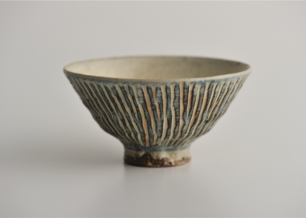 かたちのできたうつわの表面に、1本ずつ、みぞを彫っていく、鎬(しのぎ)という技法。フリーハンドで描かれてできるもようは、つくるひとによって違った顔をみせます。大杉さんの鎬は、ちょっと無骨で、シャイな表情。ジーンズのように、使い込んでみたいですね。