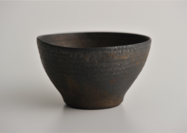 深みのある黒は、何度も窯に入るうちに、たくさんの色をふくんだのでしょうか。たのもしい落ち着きを身につけた、うつわになりました。つやつやのごはんを、もっとおいしく見せてくれそうです。
