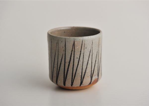 和のモチーフとしておなじみの松葉。こうして幾何学的にならぶと、とてもモダンなデザインに見えます。ろくろでひいたときの軌跡の、わずかなでこぼこに手書きの筆がひっかかって、ちょっとかすれているところもいい味になっています。絵唐津湯呑(松葉)1と絵唐津湯呑(松葉)2は色味が異なります。お好みでお選びくださいね。