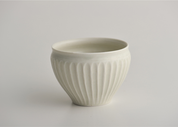 ちいさめの底から、のびやかにひろがり、ふくらんだかたちが、口もとのくびれで引き締まります。ただ「ゆのみ」というのではなく、持ったひとからそれぞれに、ちがう名前をもらえそうなうつわです。