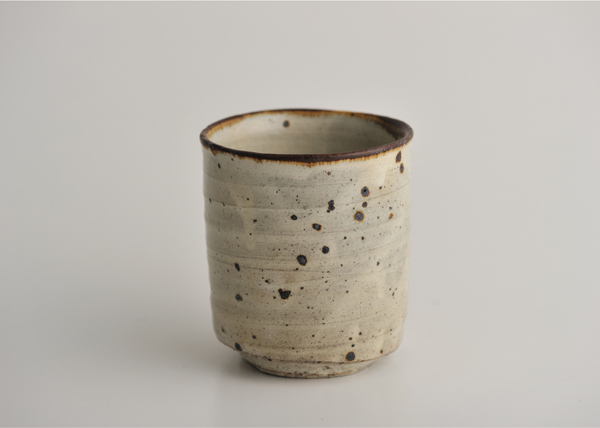 オーソドックスなかたちですが、ほんのわずかなふくらみや、ろくろの名残りは、この湯呑だけのもの。釉の中の鉄分があらわれた点々は、窯の炎がつくりました。これからは、使うひとが、育ててゆく湯呑です。