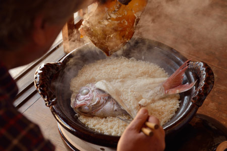 大きな土鍋で、鯛飯を炊いたら、うまいですよ。