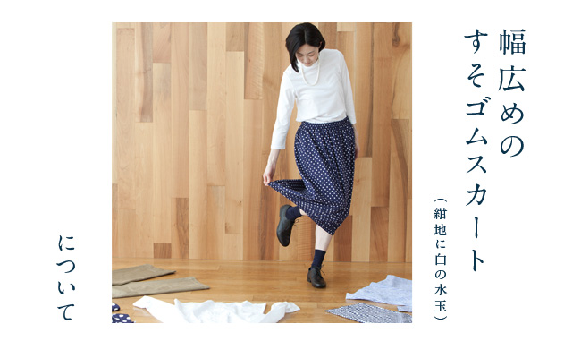 昨シーズンの秋冬に登場して 好評をいただいた裾ゴムスカート。 ウエストと裾、それぞれにゴムが入っていて、 穿くと、まあるいバルーンのようにふくらむ かわいいかたちのスカートです。