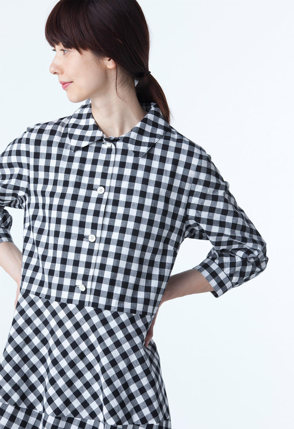 身頃、袖、カフスが、それぞれ違う向きのチェック。