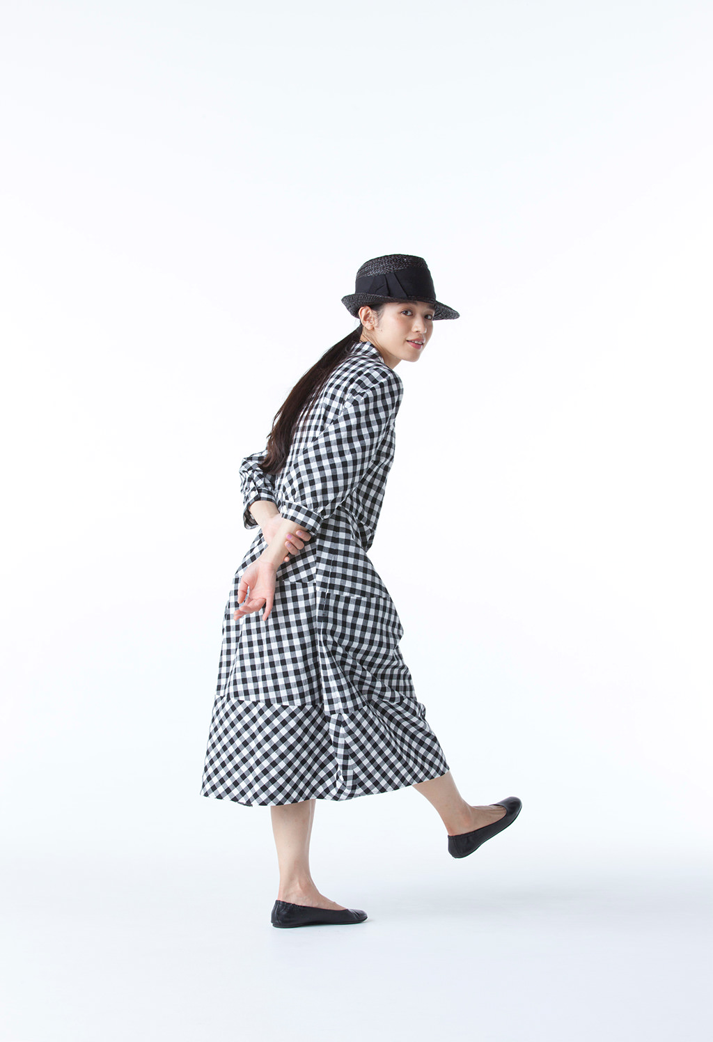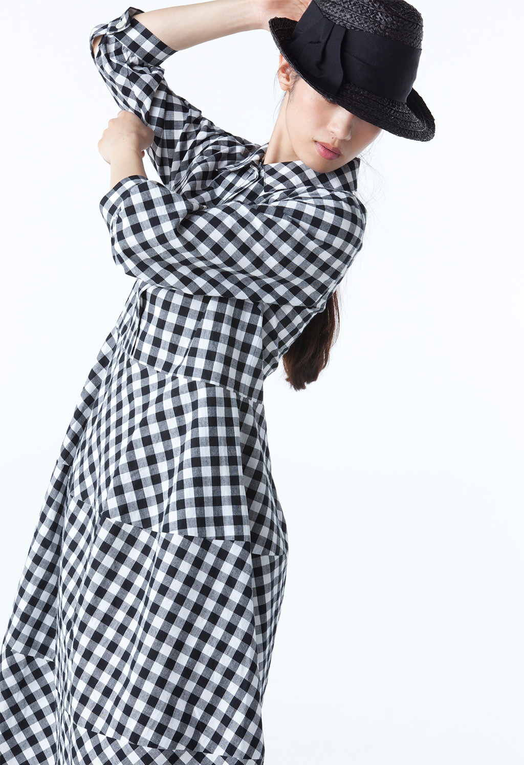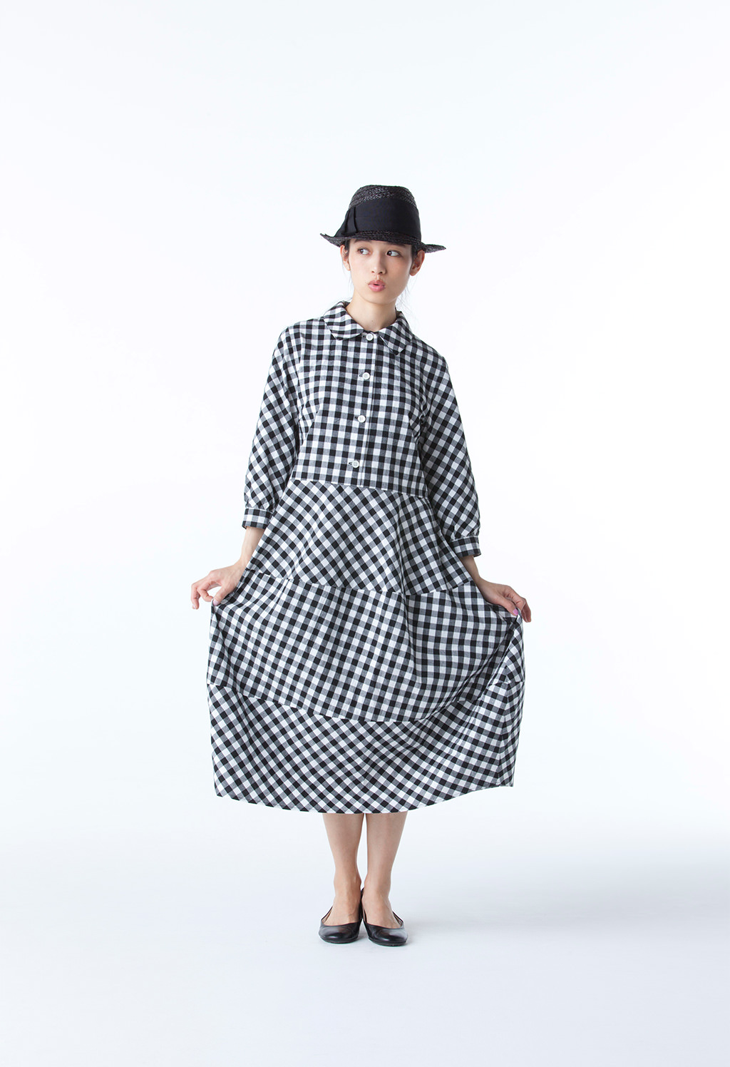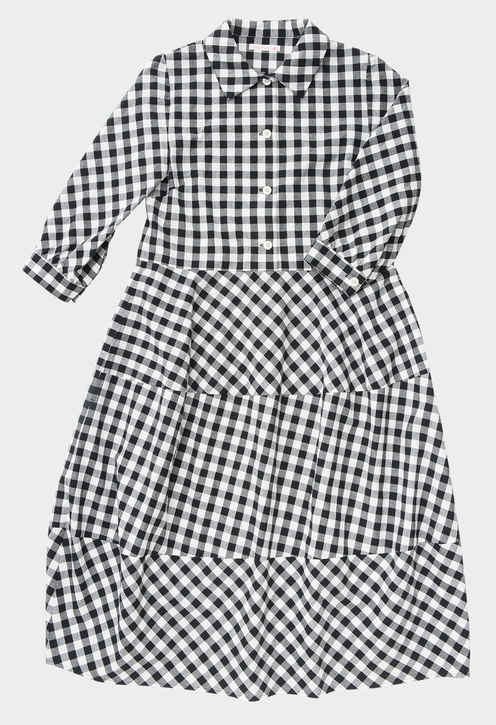 この、うんと楽しげな白と黒のギンガムのワンピース、