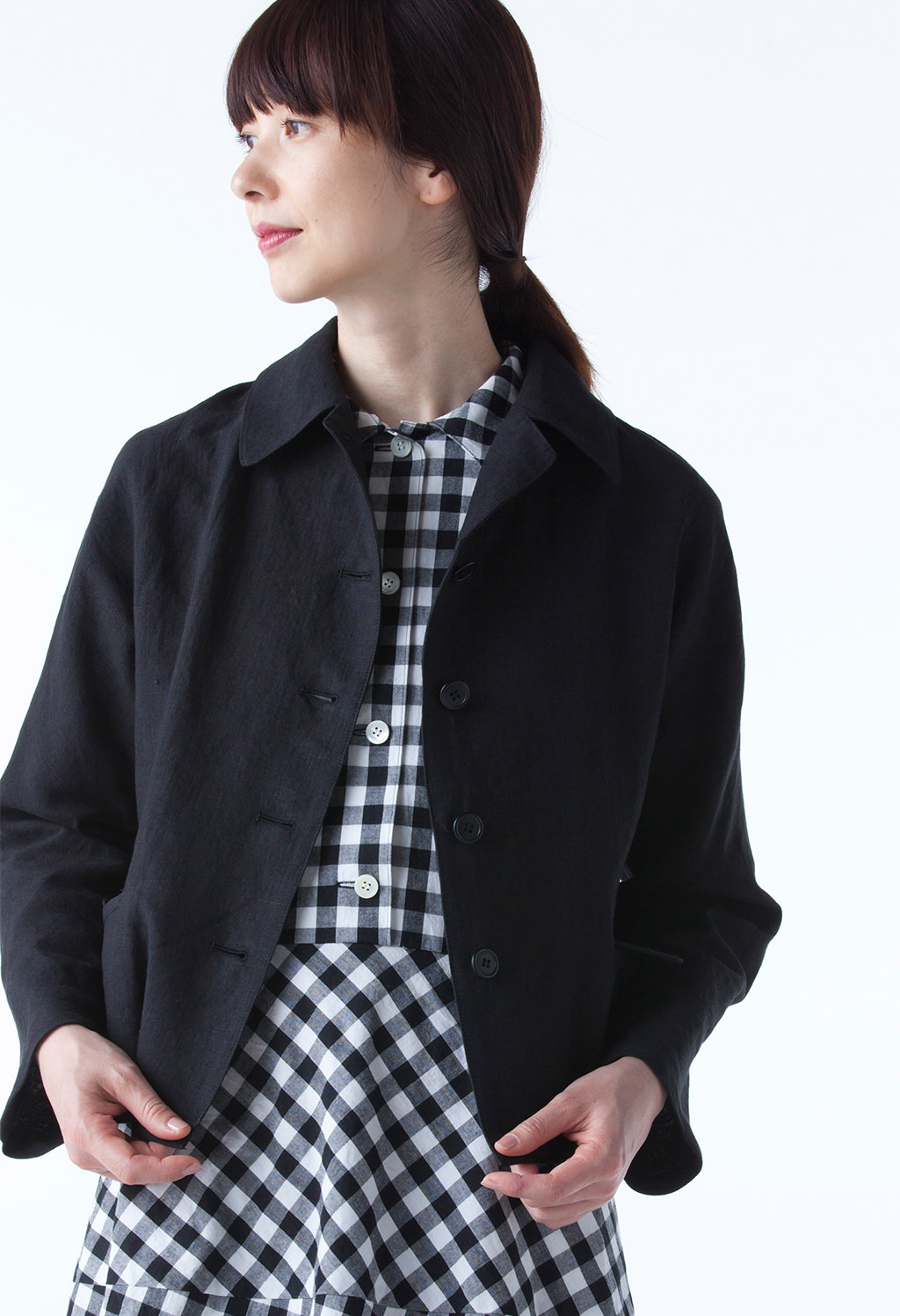 第一ボタンを留めても、開けて着てもさまになり、