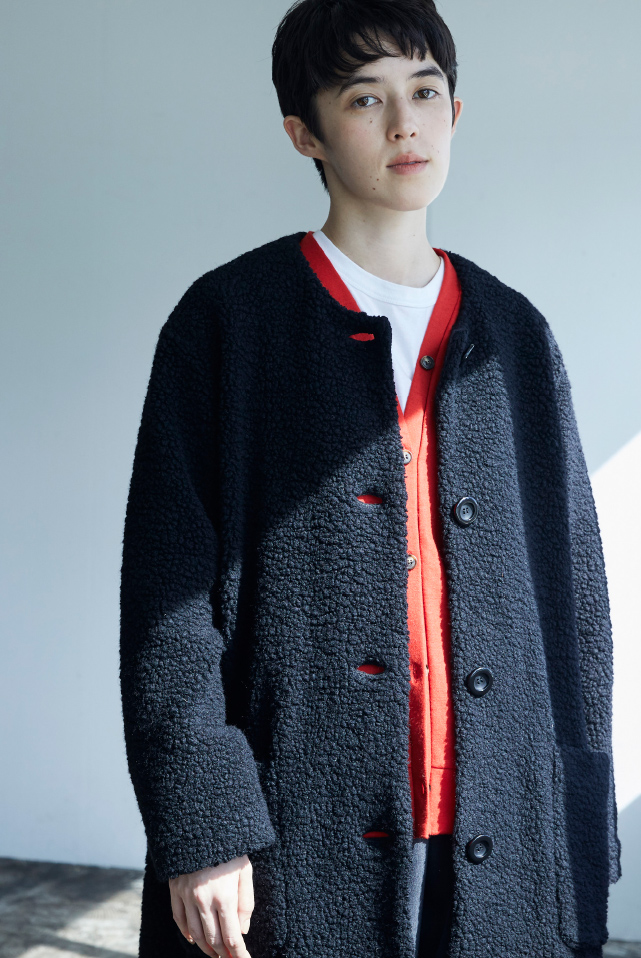 やわらかくて伸縮性のある ウールパイルという素材を生かし、 芯などをできるだけ使わずに、 ふんわりとした風合いに仕上げました。