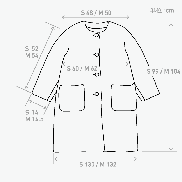 ひざ下くらいまでの丈、ゆったりした身幅。