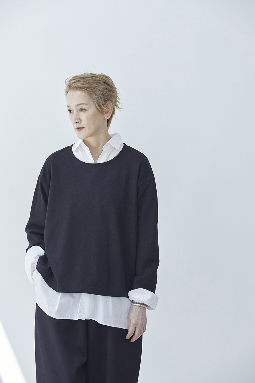 肩もドロップ気味で、誰でも着やすく。