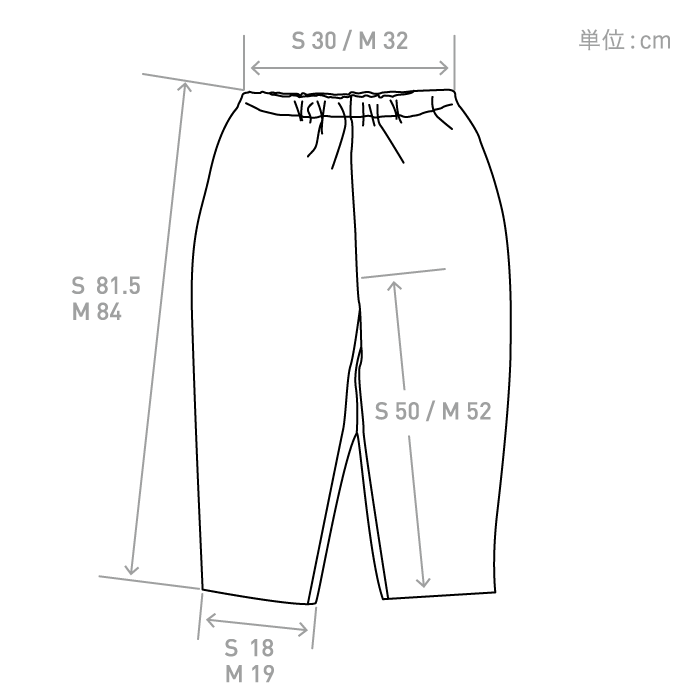 すっきりと見えるテーパードパンツ。