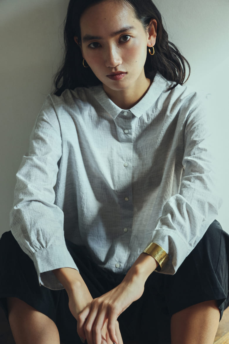 コードレーンのワイドブラウス(杢グレー・F)¥20,680(tax in)