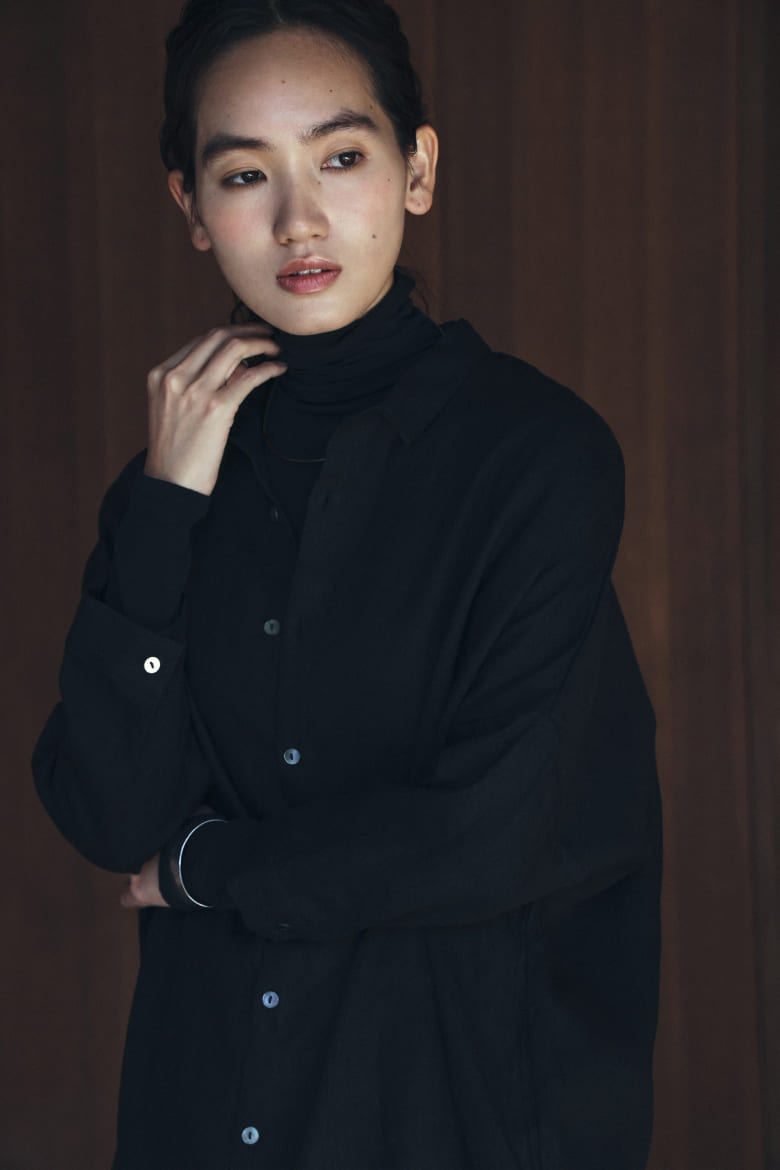 リネンのロングシャツ(ブラック・F)¥22,880(tax in)