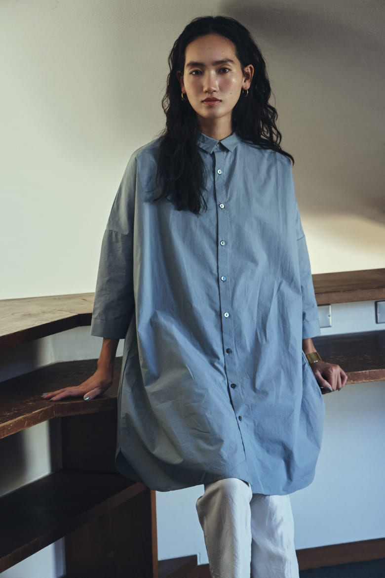 タイプライターのロングシャツ(ブルーグレー・F)¥22,880(tax in)