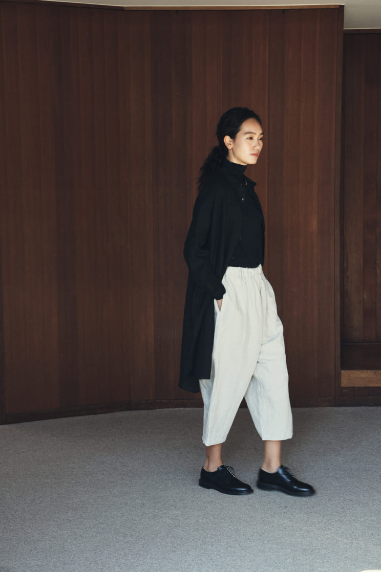 「HUIS.」さんの洋服は、すべてフリーサイズ。生地をたっぷりつかって、ゆったりと作られています。