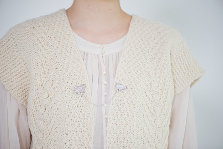 2.ニットに着けたとき埋もれてしまわない大きさにすること。