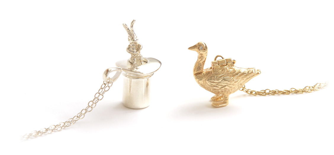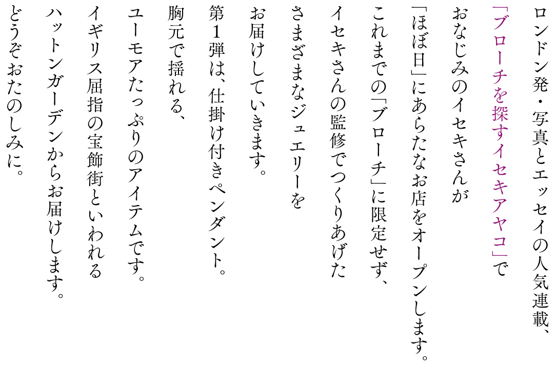 1960年代半ばのイギリスで大流行した 仕掛け付きジュエリーから インスピレーションを得て作りました。 贈っても贈られてもたのしい メカニカル・ジュエリーで みなさんもぜひ遊んでください。