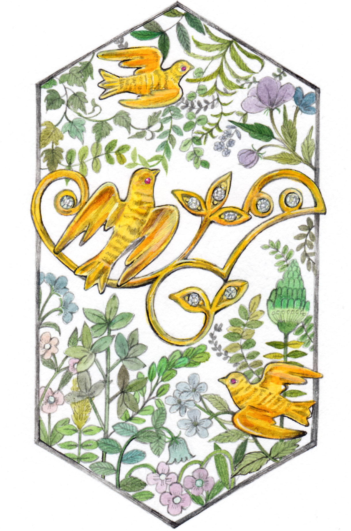 素材はダイヤモンド、ルビー、イエローゴールド。
