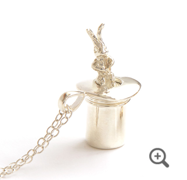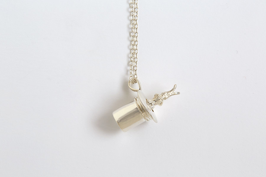 黒いトップハットからうさぎを取り出す、