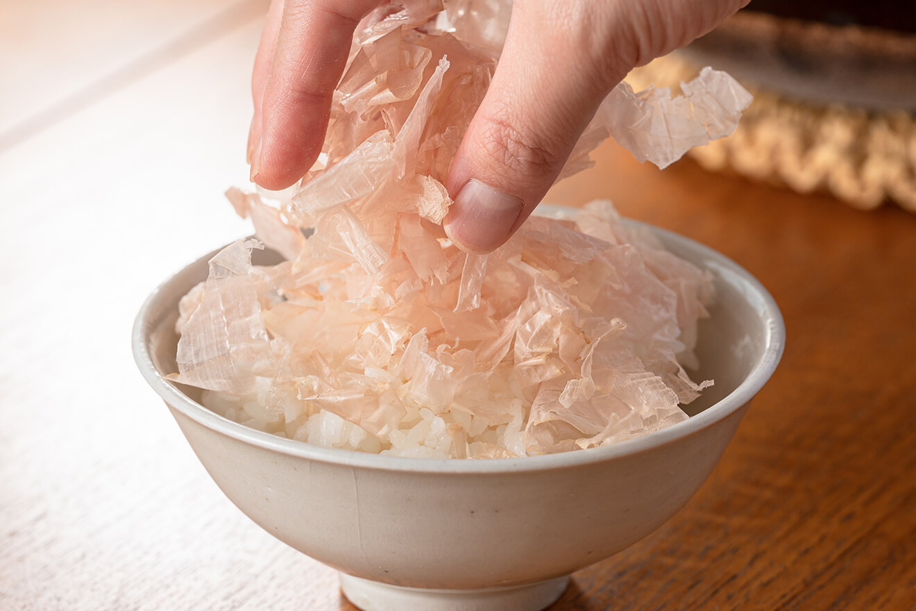ごはんの湯気が削り節をおどらせて、ゆらゆら。