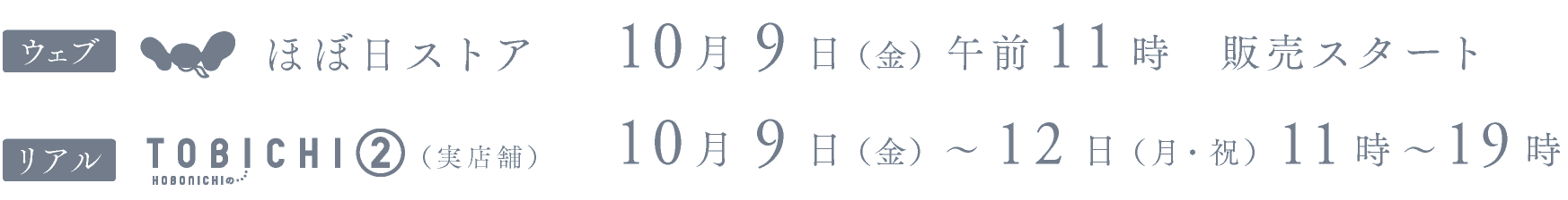 TOBICHI②販売分は、お買い上げいただいた日に