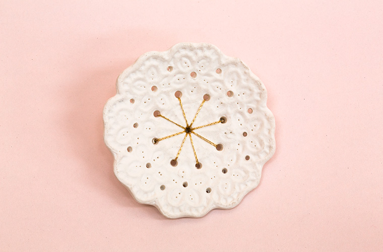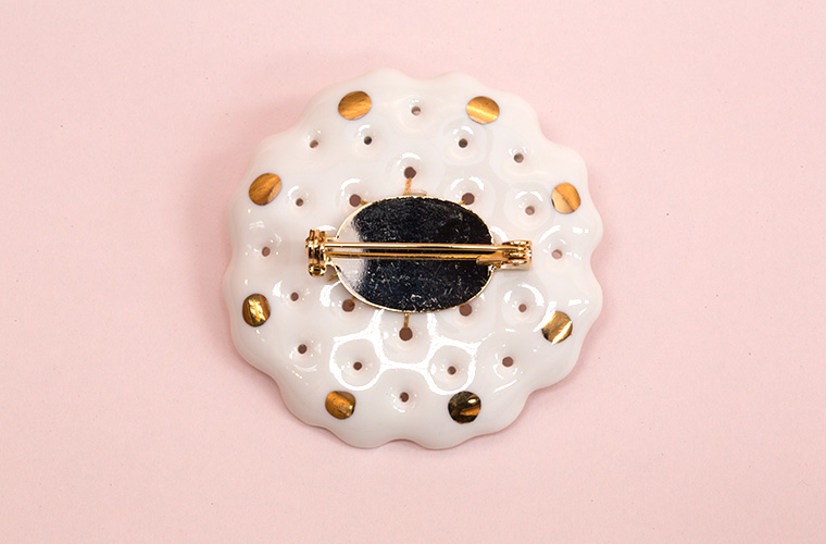 素材/白磁(裏面に金彩)、真鍮、金糸