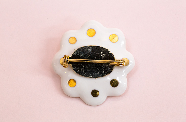 素材/白磁(裏面に金彩)、真鍮、金糸