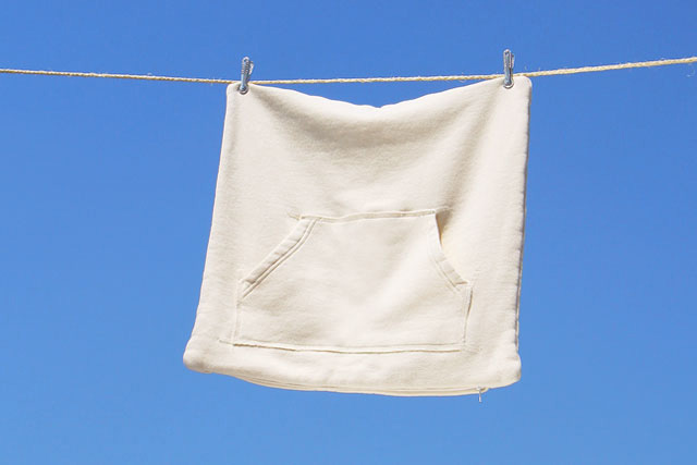 吊り編み機で編んだ生地は、洗ってもへこたれず、