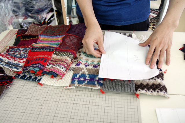 パッチワークは、ニットの色柄や素材、組み合わせが、