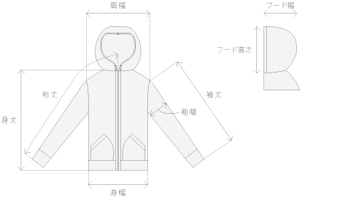 | 「くまのぜいたくパーカ」のサイズ表 |