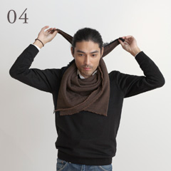 | 首の後ろで交差させて、 肩から前にたらします。 (結びません。) |