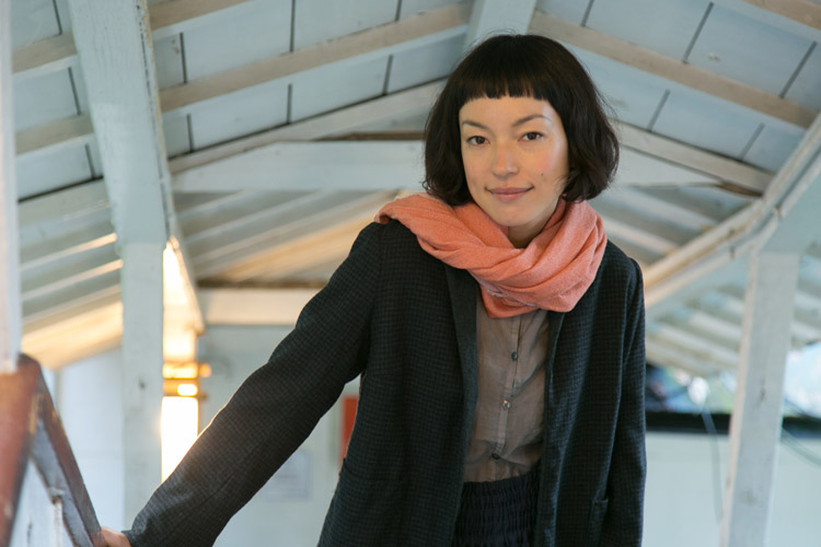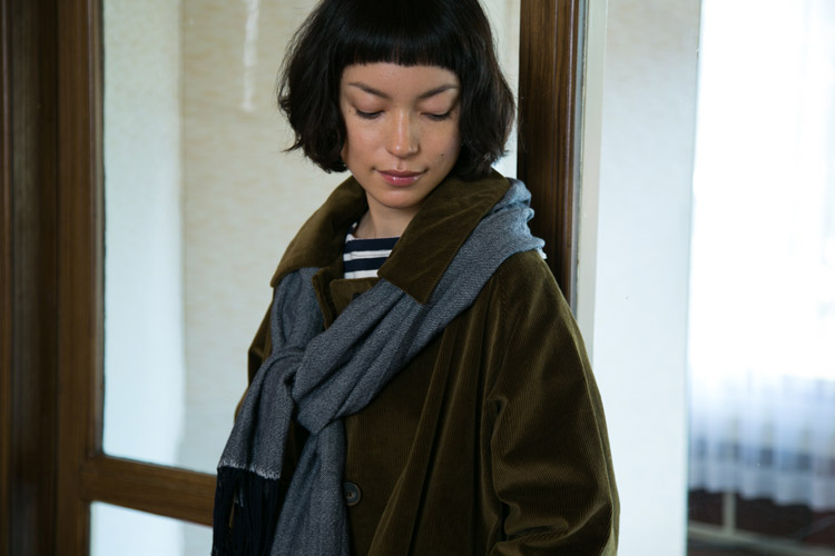 こちらは、両端に入ったボーダーがかわいいくびまき。 |