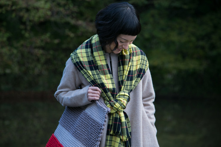 この「椿色のブロックチェック」(ふわふわロング)もそう。 |