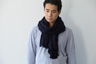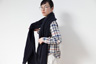 濃紺一色で染めた中羊糸で織りました